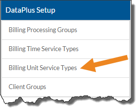 Select Billing Unit Service Types on theDataPlus Setup card.