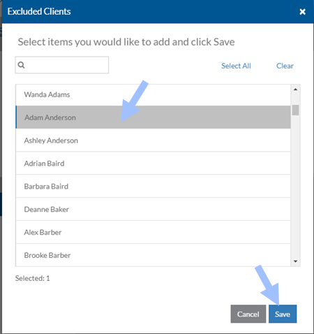 Select the minus sign next to a client to remove them from the list of exclusions for this service type.