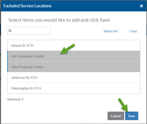 Select Add on the Excluded Clients card to select any client that would never receive this service type for data entry.