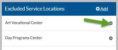 Select the minus sign next to a service location to remove it from the list of exclusions for this service type.