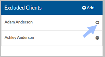 Select the minus sign next to a client to remove them from the list of exclusions for this service type.