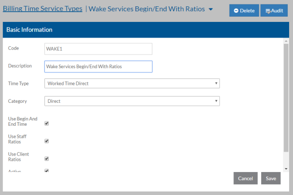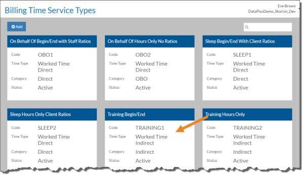 If you do not sync billing time service types from ProviderPro, select Add to create a new one.