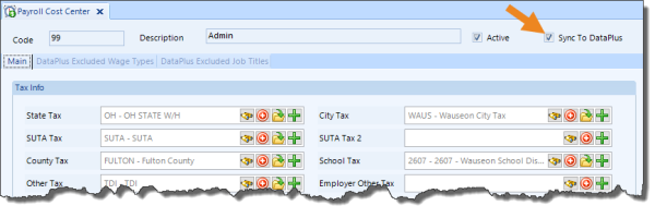 Make sure the Active check box and Sync To DataPlus check boxes selected are selected.