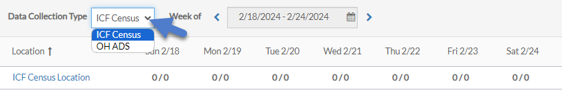Select the appropriate Data Collection Type from the list and make sure the Week of is on the correct week.