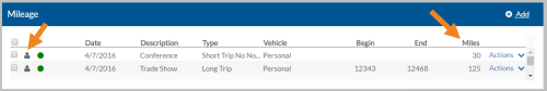 The person icon indicates that this is a Staff Mileage Log transaction.
