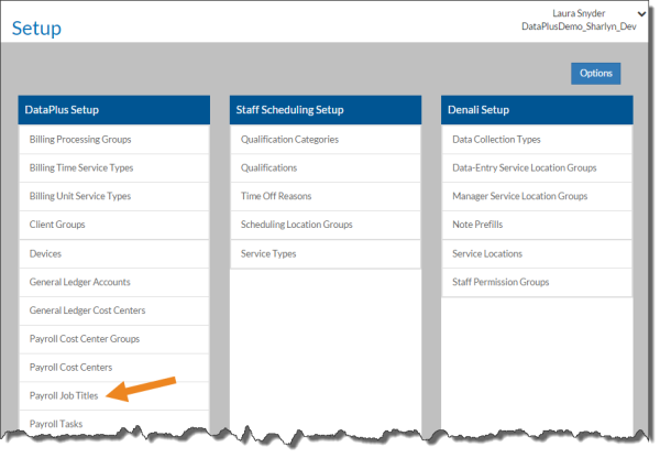 Payroll job titles are one component of the payroll task that staff select when logging either staff worked time without clients or non-worked time. The Payroll Job Titles that are part of the payroll tasks available to staff to select from when logging staff time worked without clients and non-worked time are set in the Data Collection Types assigned to their Staff Permission Group. In addition, certain tasks may be unavailable to staff if the payroll cost center selected excludes that job title or the job title is not part of any tasks. Payroll job titles are included in the export file that is later imported into ProviderPro Payroll Wage Entries.