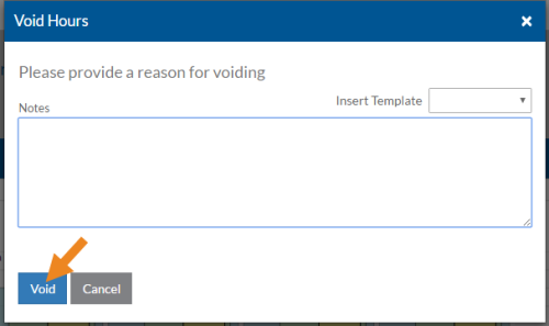 - Enter any notes or select a pre-defined note from the Insert Template list, if you would like to include a reason for voiding (unvoiding). Notes may or may not be required depending on your agency setup.