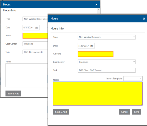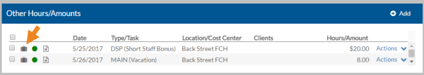- Other Hours/Amounts grid on the My Log or Staff Log screen, if you enter total hours or an amount.