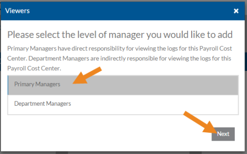 Important: Primary Managers have direct responsibility for viewing the log entries for this Payroll Cost Center. Department Managers are indirectly responsible for viewing the log entries for this Payroll Cost Center.