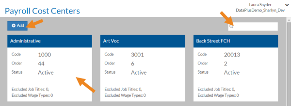 Select a Payroll Cost Center card from the list, enter a Payroll Cost Center in the Search box to search for a specific Payroll Cost Center.