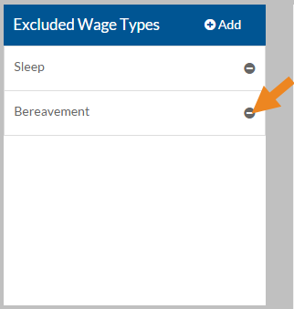 Select the minus sign next to a wage type to remove it from the list of exclusions for this Payroll Cost Center.