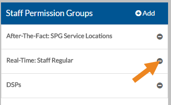 Select the minus sign next to a staff permission group to remove it from this payroll cost center.