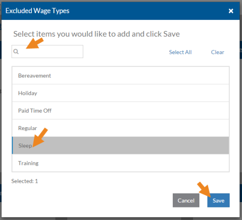 Select the wage types that would never apply to this Payroll Cost Center and then click Save.