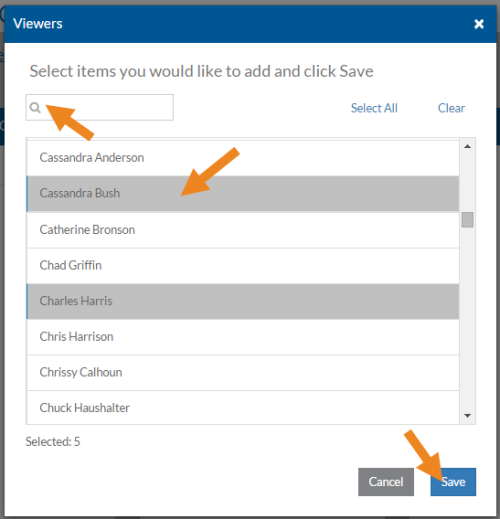 Select the viewers you want to assign to the Payroll Cost Center and then click Save.