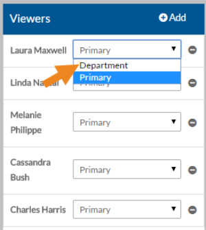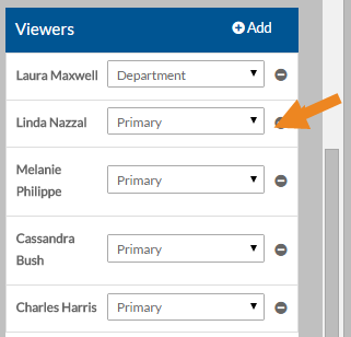 Select the minus sign next to a viewer to remove him or her from the Payroll Cost Center.