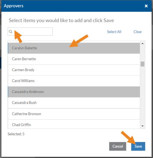 Select the approvers you want to assign to the Payroll Cost Center and then click Save.