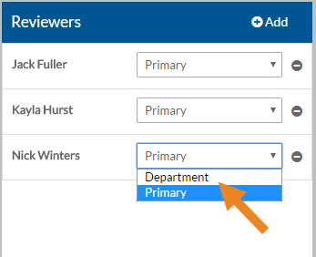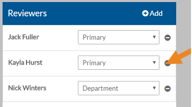 Select the minus sign next to a reviewer to remove him or her from the Payroll Cost Center.