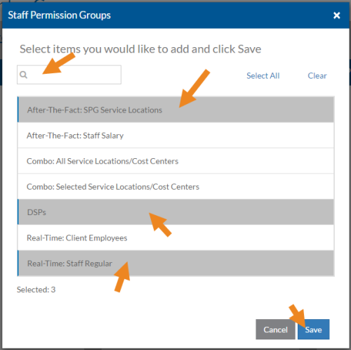 Select the staff permission groups you want to assign to this payroll cost center and then click Save.