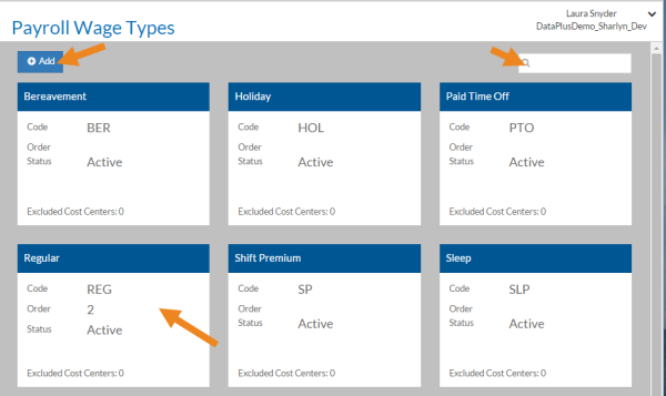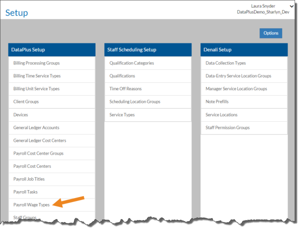 Select Payroll Wage Types on theDataPlus Setup card.