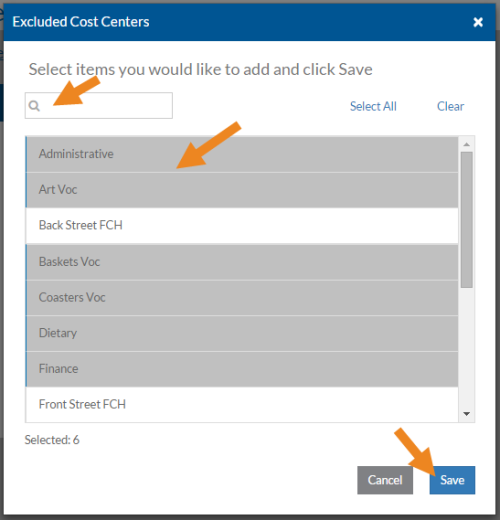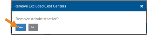 Step Results: The Excluded Cost Centers pop-up opens.