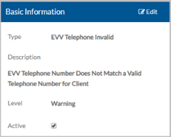 | If you are using Sandata's telephony solution, this flag appears when the call-in telephone number does not match one of the valid phone numbers set for the client or the client's service location. | |