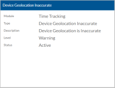 | This flag appears when the EVV geolocation coordinates captured had poor accuracy. This can be caused if the device does not have a GPS chip. | |
