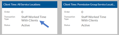 Navigate to the Data Collection Types setup list and then select the card of a data collection type that has a Transaction Type of Staff Worked Time With Clients.