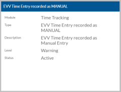 Sandata can insert the EVV-related flags that may appear on Staff Time Worked With Client entries for the EVV services. They are set as warnings that must be acknowledged by a manager.