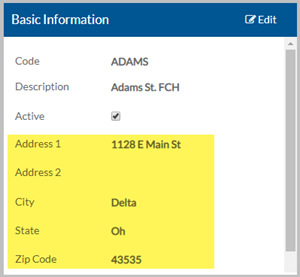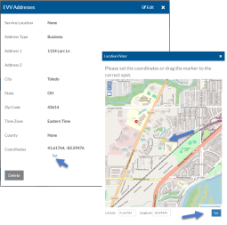 For each service location that you provide EVV services, you need to set the EVV Address Type, Time Zone (if different from the default set in Options), telephony information and geolocation coordinates (Latitude and Longitude).