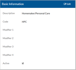Navigate to the EVV Procedure Codes setup list and then select the card of the procedure code you want to edit or select + to add a new one.