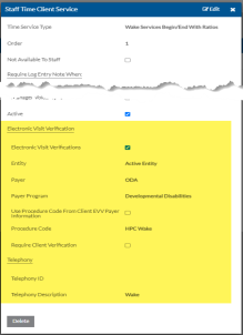 Procedure codes are associated with the EVV services. You can add or edit them as needed: