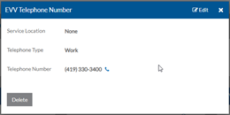 EVV Telephone Types are used to describe the various telephone numbers at the locations where a client receives EVV services.