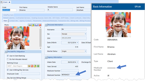 Make sure each client that receives EVV services has their Medicaid Number set up in ProviderPro. This information will sync to Time Tracking for use in the EVV electronic file, but will be masked from view in Time Tracking.