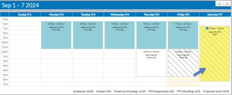 If a co-worker sends a request to fill a shift they have posted, it will appear in your My Schedules as a Pending Shift. You can then either accept or reject the request. If you accept it, depending on the settings of the scheduling location, a schedule manage may still need to approve the swap. You will also receive a message in the Message Center when you receive a substitute request.