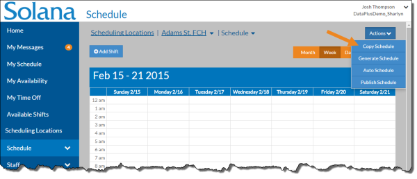 Step Results: It may take a few minutes for the copy to complete. You will need to click off the copy to week and come back to view the copied shifts.