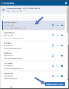 Select the name of the person you want to send a message to asking them to fill your shift and select Send Substitute Request.