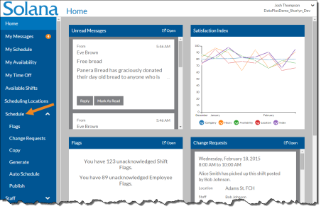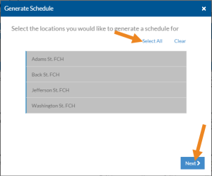 Select the scheduling location/week to go to the scheduling location's schedule.