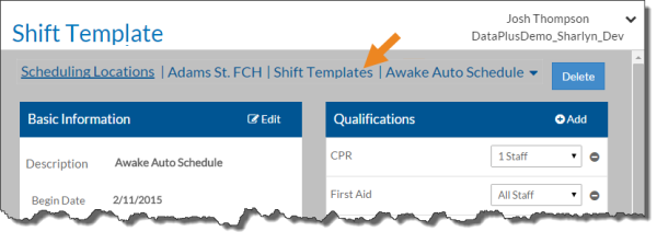 Click Shift Templates in the breadcrumbs to return to Shift Templates.