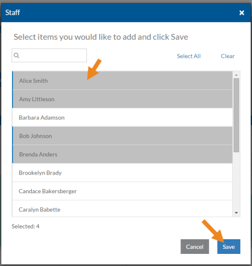 Select the staff you want to assign to this time slot and select Save.