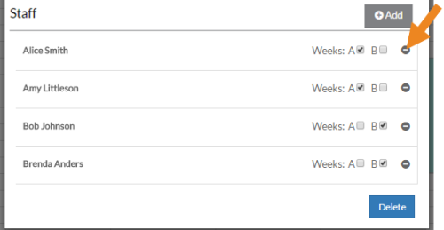 Select the minus sign to remove the staff from the time slot completely.