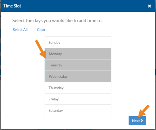 Select the days of the week on which this shift occurs and select Next.