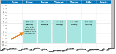 Step Results: The names of the staff assigned to the slot appear in the time slot on the grid.