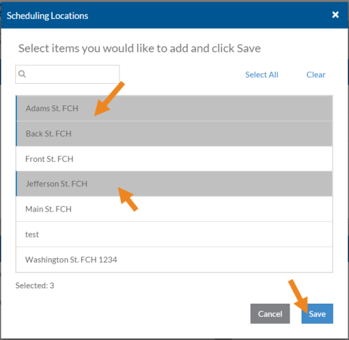 Select the scheduling locations you want to assign to the qualification and then click Save.