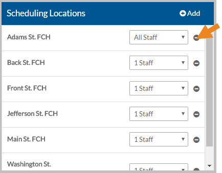 Select the minus sign next to a scheduling location to remove it from the qualification.