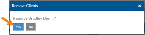 Step Results: The client no longer appears on the Clients card. If the client had any qualifications (that other clients do not have), they will disappear from the Client Qualifications card.
