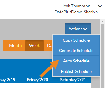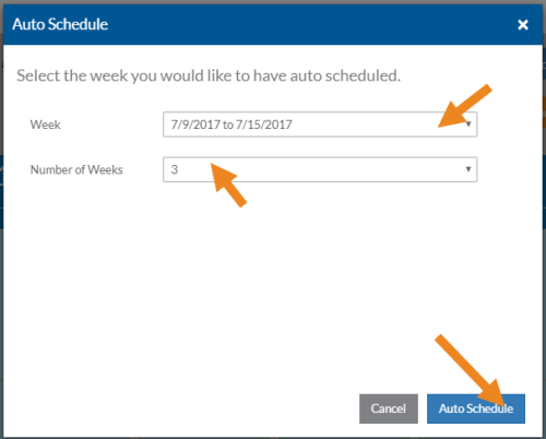 Select the first week you want to auto schedule, the number of weeks you want to autoschedule and then click Auto Schedule.