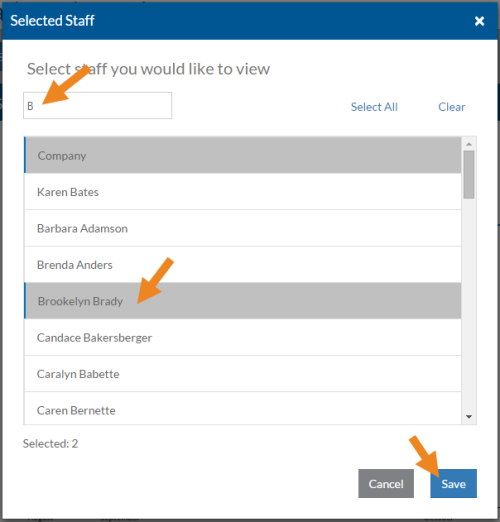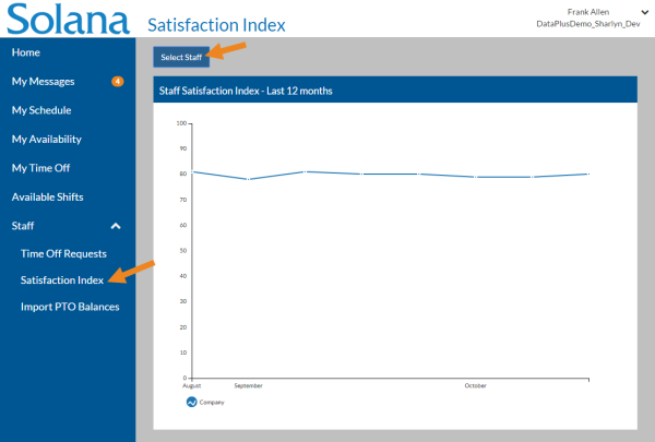 - Select Satisfaction Index under Staff in the menu and then click Select Staff.