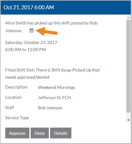 Note: Select Details to go to the associated shift.
