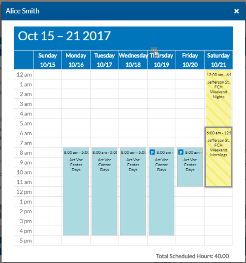 Note: The Total Scheduled Hours does not include the pending shift(s) - the striped yellow one(s).