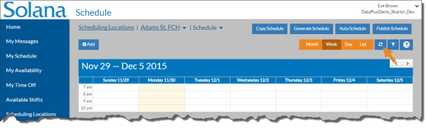 Note: It may take a few minutes for the Publish process to complete. You will need to click the Refresh icon to view the published shifts.